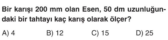 6. Sınıf Uzunluk Ölçme Birimleri Test 7