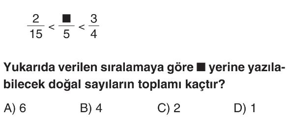 📝6. Sınıf Kesirlerde Sıralama Test 4