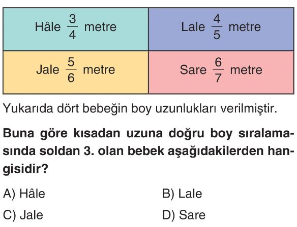 📝6. Sınıf Kesirlerde Sıralama Test 3