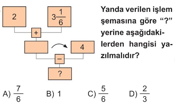 6. Sınıf Kesirlerde Toplama ve Çıkarma İşlemi Test 1