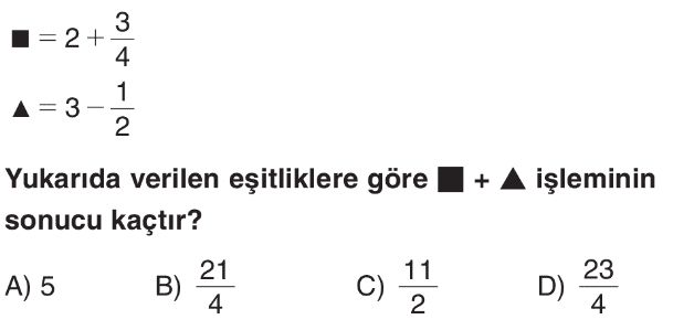 6. Sınıf Kesirlerde Toplama ve Çıkarma İşlemi Test 1