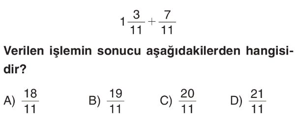 6. Sınıf Kesirlerde Toplama ve Çıkarma İşlemi Test 2
