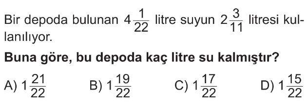 6. Sınıf Kesirlerde Toplama ve Çıkarma İşlemi Test 3