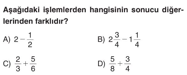 6. Sınıf Kesirlerde Toplama ve Çıkarma İşlemi Test 3