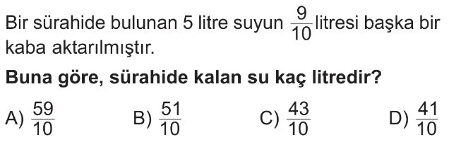6. Sınıf Kesirlerde Toplama ve Çıkarma İşlemi Test 4