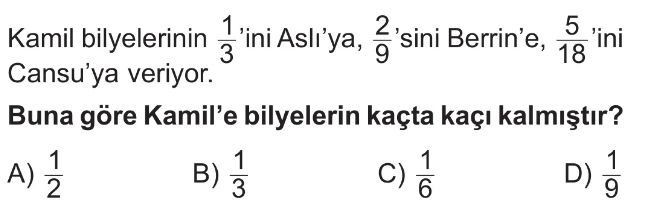 6. Sınıf Kesirlerde Toplama ve Çıkarma İşlemi Test 5