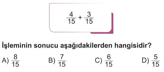 6. Sınıf Kesirlerde Toplama ve Çıkarma İşlemi Test 6