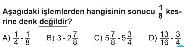 6. Sınıf Kesirlerde Toplama ve Çıkarma İşlemi Test 7