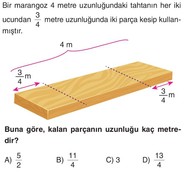 6. Sınıf Kesirlerde Toplama ve Çıkarma İşlemi Test 7