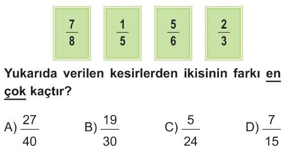 6. Sınıf Kesirlerde Toplama ve Çıkarma İşlemi Test 8