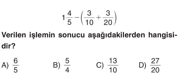 6. Sınıf Kesirlerde Toplama ve Çıkarma İşlemi Test 8