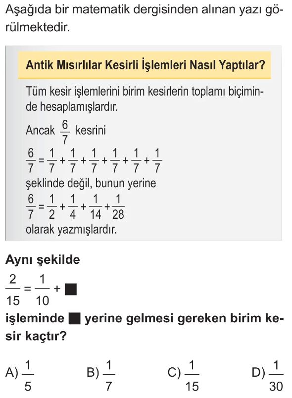 6. Sınıf Kesirlerde Toplama ve Çıkarma İşlemi Test 10