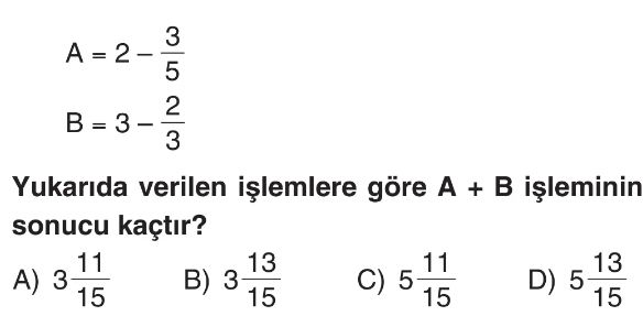6. Sınıf Kesirlerde Toplama ve Çıkarma İşlemi Test 11