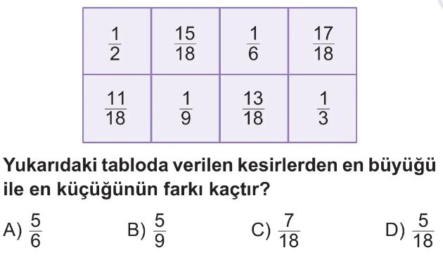 6. Sınıf Kesirlerde Toplama ve Çıkarma İşlemi Test 11