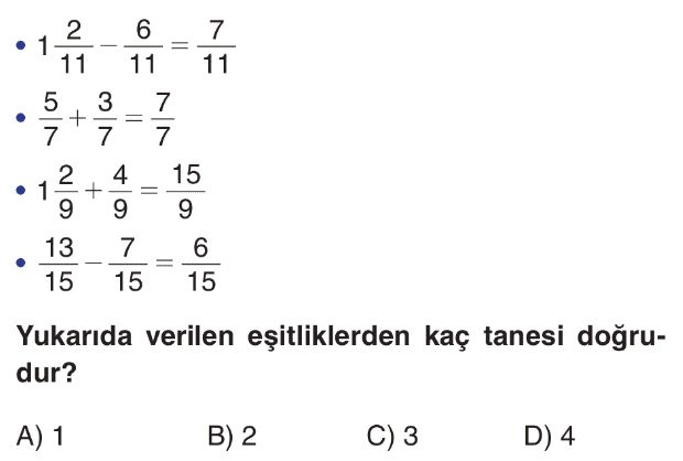 6. Sınıf Kesirlerde Toplama ve Çıkarma İşlemi Test 12