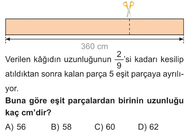 6. Sınıf Bir Çokluğun İstenilen Kesir Kadarını Bulma Test 1