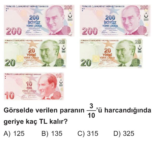 6. Sınıf Bir Çokluğun İstenilen Kesir Kadarını Bulma Test 1