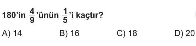 6. Sınıf Bir Çokluğun İstenilen Kesir Kadarını Bulma Test 1