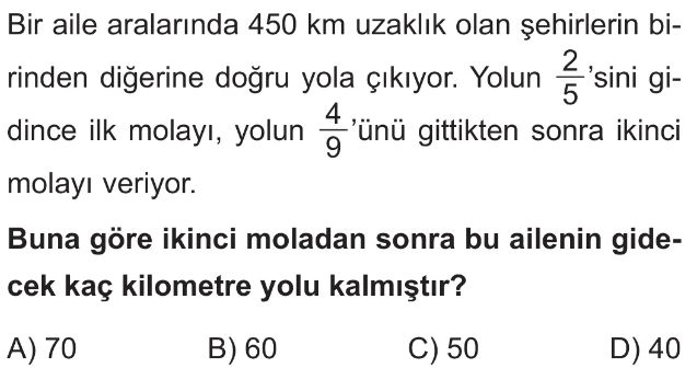 6. Sınıf Bir Çokluğun İstenilen Kesir Kadarını Bulma Test 1