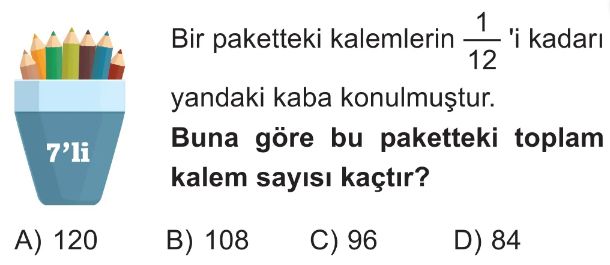 6. Sınıf Bir Çokluğun İstenilen Kesir Kadarını Bulma Test 1