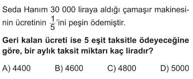 6. Sınıf Bir Çokluğun İstenilen Kesir Kadarını Bulma Test 2
