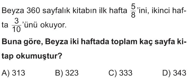 6. Sınıf Bir Çokluğun İstenilen Kesir Kadarını Bulma Test 2