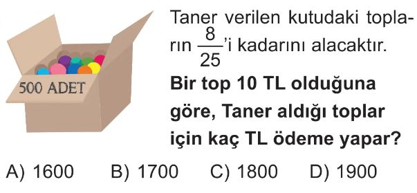 6. Sınıf Bir Çokluğun İstenilen Kesir Kadarını Bulma Test 2