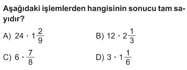 6. Sınıf Kesirlerde Çarpma Test 9