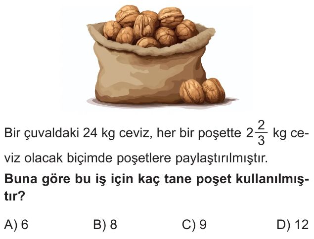6. Sınıf Kesirlerde Bölme İşlemi Test 1