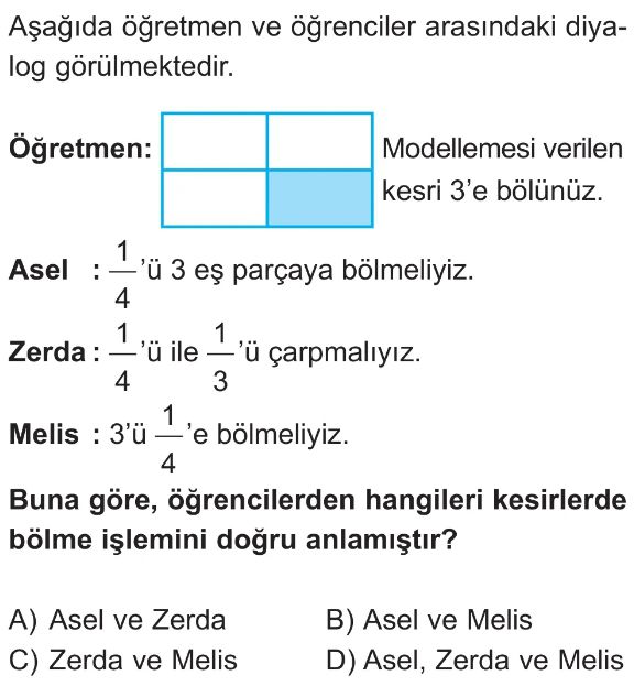 6. Sınıf Kesirlerde Bölme İşlemi Test 1