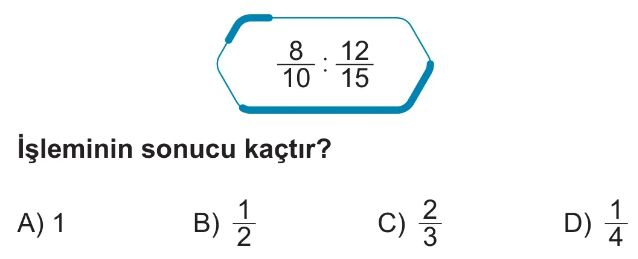 6. Sınıf Kesirlerde Bölme İşlemi Test 1