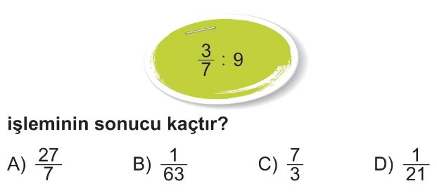 6. Sınıf Kesirlerde Bölme İşlemi Test 2