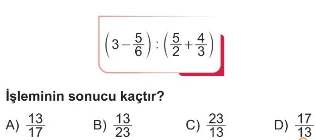 6. Sınıf Kesirlerde Bölme İşlemi Test 3