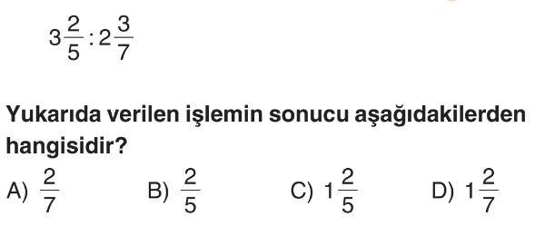 6. Sınıf Kesirlerde Bölme İşlemi Test 3