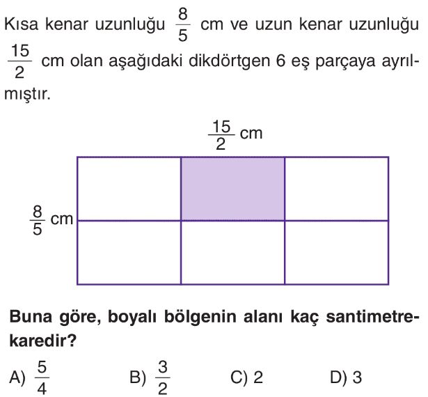 6. Sınıf Kesirlerde Bölme İşlemi Test 3