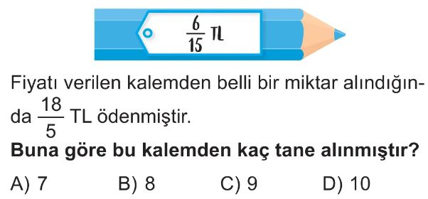 6. Sınıf Kesirlerde Bölme İşlemi Test 7
