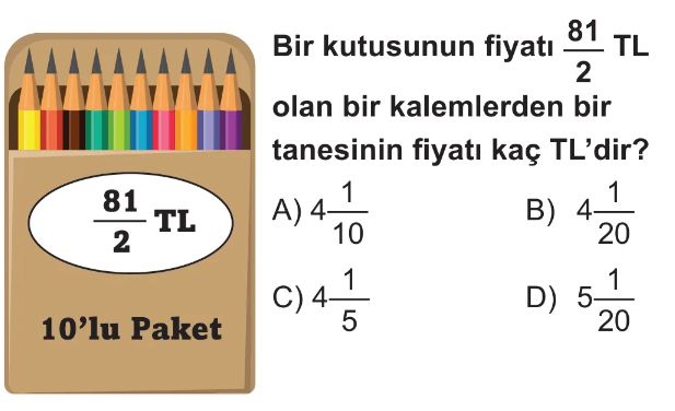 6. Sınıf Kesirlerde Bölme İşlemi Test 8