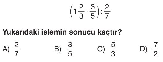 6. Sınıf Kesirlerde Bölme İşlemi Test 10