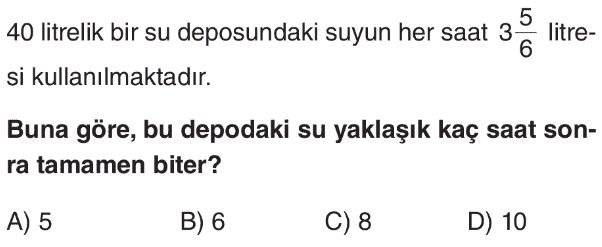 6. Sınıf Kesirlerde Tahmin Etme Test 1