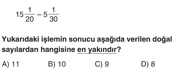6. Sınıf Kesirlerde Tahmin Etme Test 1