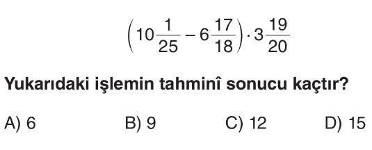 6. Sınıf Kesirlerde Tahmin Etme Test 1