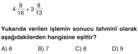 6. Sınıf Kesirlerde Tahmin Etme Test 3