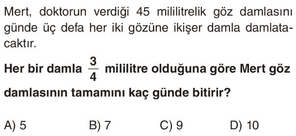 6. Sınıf Gerçek Yaşam Problemleri (Kesirler) Test 1
