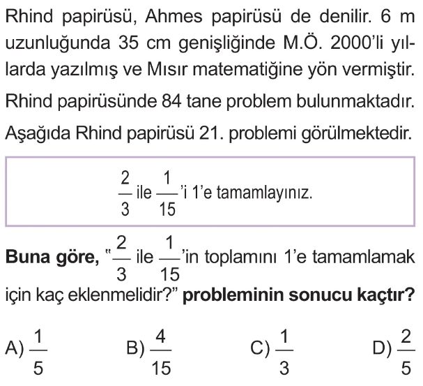 6. Sınıf Gerçek Yaşam Problemleri (Kesirler) Test 1