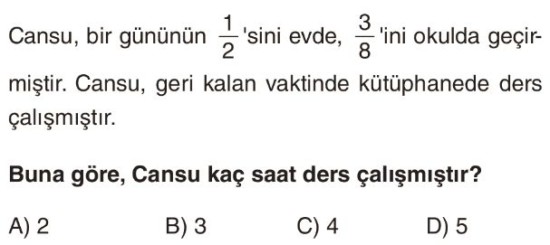 6. Sınıf Gerçek Yaşam Problemleri (Kesirler) Test 2