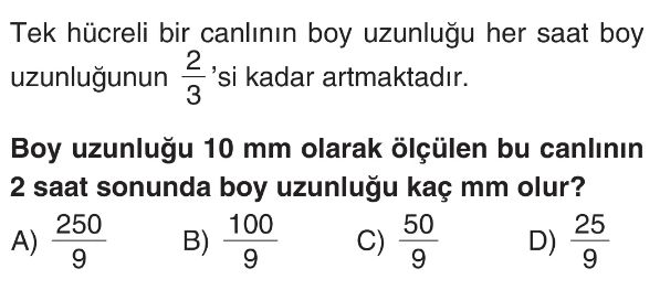6. Sınıf Gerçek Yaşam Problemleri (Kesirler) Test 3