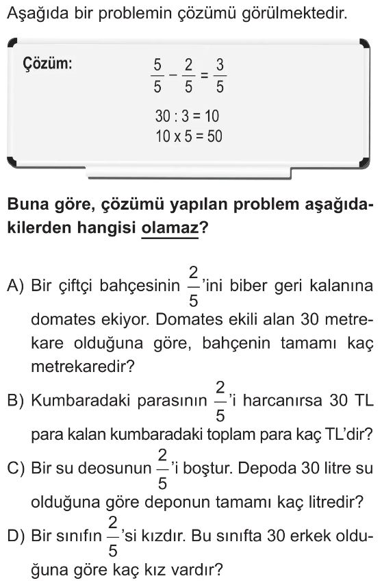 6. Sınıf Gerçek Yaşam Problemleri (Kesirler) Test 3