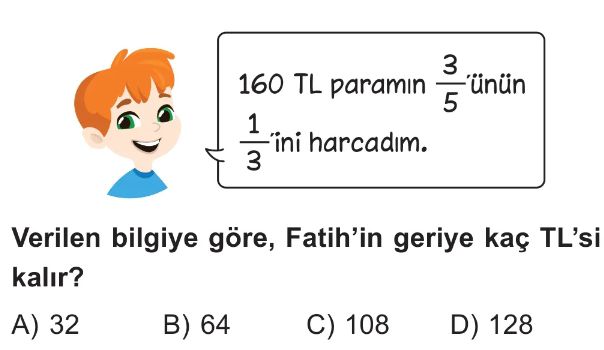 6. Sınıf Gerçek Yaşam Problemleri (Kesirler) Test 3