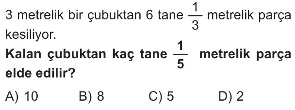 6. Sınıf Gerçek Yaşam Problemleri (Kesirler) Test 5
