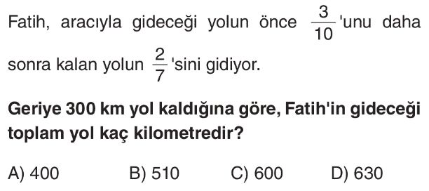 6. Sınıf Gerçek Yaşam Problemleri (Kesirler) Test 5